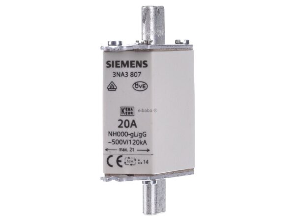 LV HRC fuse element, NH000, In: 20A, gG, Un AC: 500 V, Un DC: 250 V, Front indicator, live grip lugs
