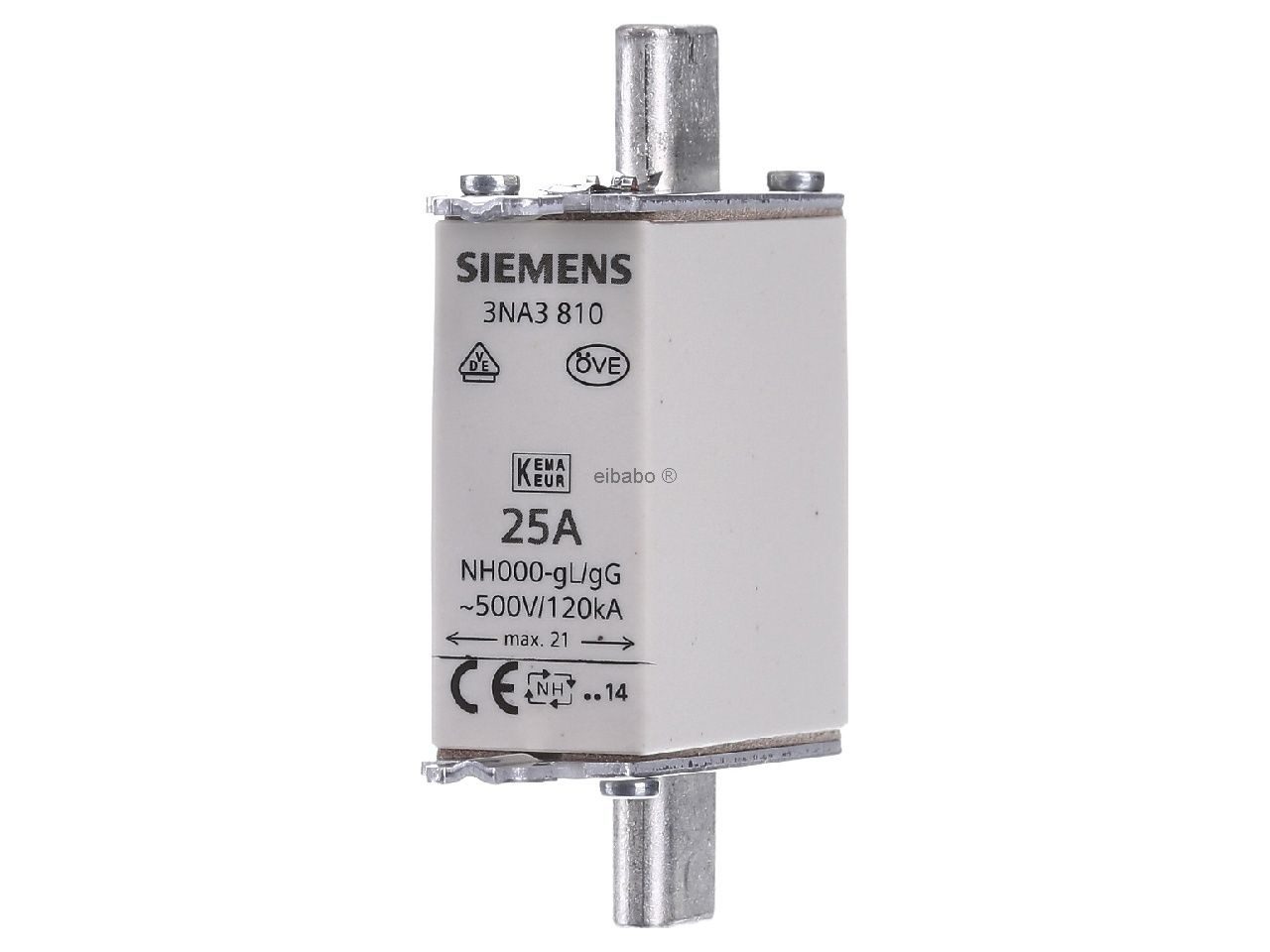 LV HRC fuse element, NH000, In: 25A, gG, Un AC: 500 V, Un DC: 250 V, Front indicator, live grip lugs
