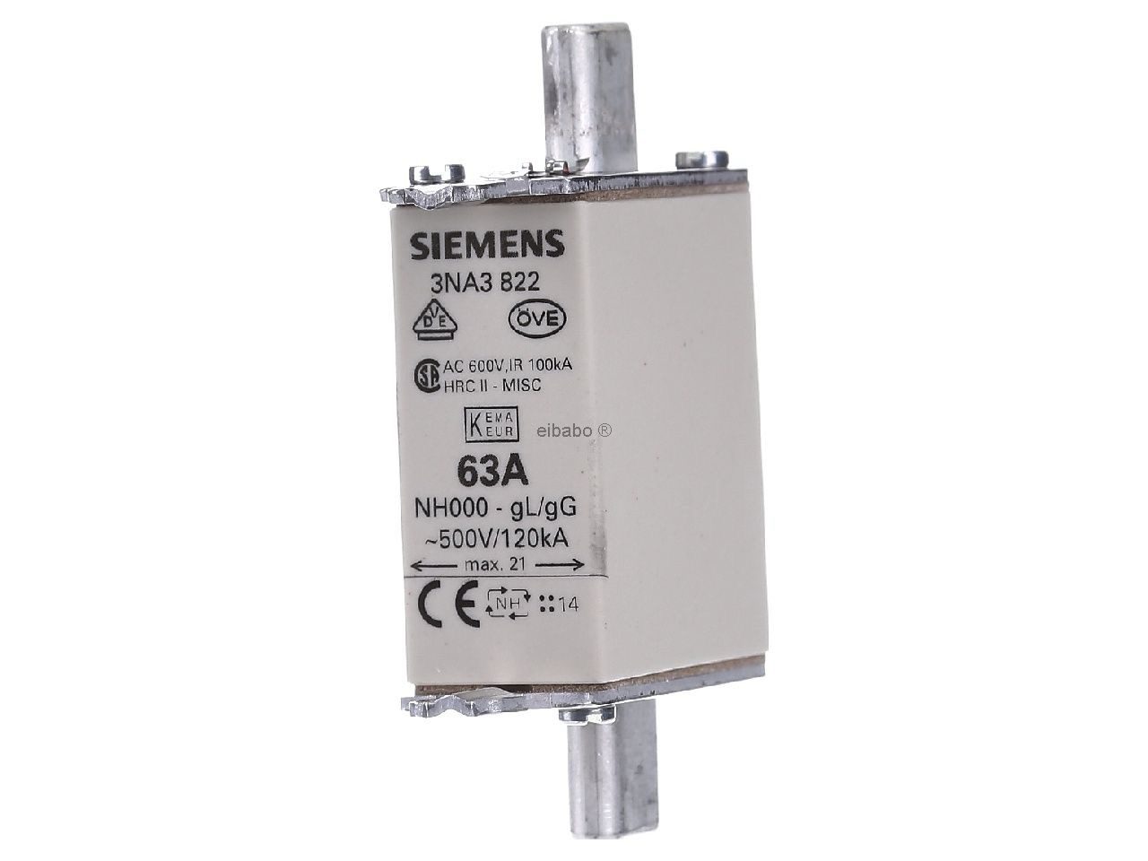 LV HRC fuse element, NH000, In: 63 A, gG, Un AC: 500 V, Un DC: 250 V, Front indicator, live grip lugs